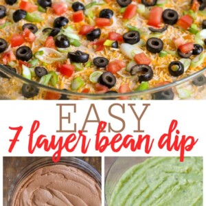 This is our family’s favorite 7 Layer Bean Dip recipe! It has loads of flavor and all your favorite dip ingredients including avocados, olives, tomatoes, cheese, guacamole and more! It’s a must-have appetizer at every family function.