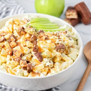Snickers Salad might have “salad” in the name, but it’s really a creamy, candy-filled dessert that tastes like a caramel apple sundae. Tart Granny Smith apples balance the sweetness of the Snickers and pudding, making it both refreshing and indulgent.