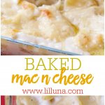 It’s a Baked Macaroni and Cheese recipe that is so tasty and cheesy. We’ve been long-time fans of macaroni and cheese so you better believe everyone – kid and adult – loved this recipe!