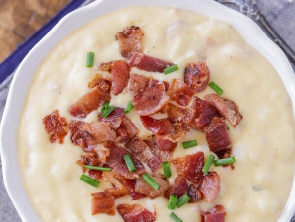 - toppings – sour cream, Greek yogurt, chives, chopped bacon, shredded sharp cheddar cheese, or your favorite cheese