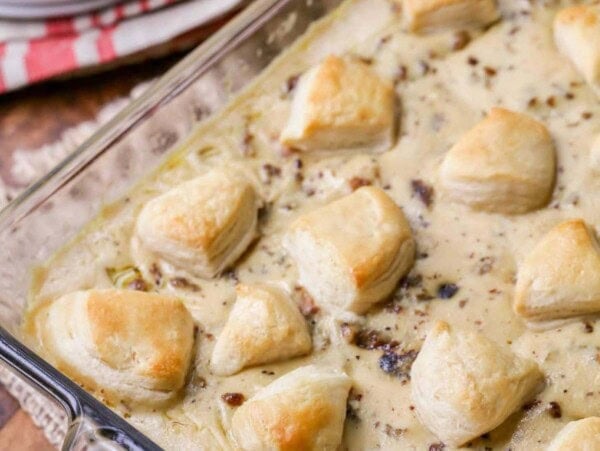 Mom has made these forever and now our sister is the one who makes them for morning gatherings. They are loved by the entire family because who doesn’t love a warm and flaky biscuit smothered in a thick and creamy sausage gravy?!