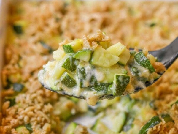 We LOVE broccoli cheese casserole and enjoy it for dinner regularly! It’s packed with broccoli covered in a creamy sauce and topped with a salty, crunchy Ritz cracker topping – our favorite part. We also love that it feeds a crowd (about 8-10) and takes minimal effort (10 minutes prep!).
