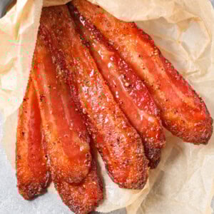 This easy candied bacon recipe is pure magic, whether you’re serving it for breakfast or as a show-stopping appetizer. If you’ve never had candied bacon, you are in for a serious treat. It’s the perfect combination of salty, smoky, and crispy bacon with a caramelized, sweet, and sugary coating. Trust me, you’ll be hooked!
