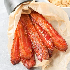 - Thick cut bacon (1 pound)- Hearty slices that crisp up beautifully while holding the sweet coating. You can use thin-cut bacon, but watch carefully to avoid it from becoming over-baked.