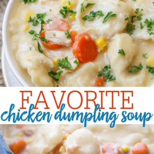 Our all-time favorite version of one of the most classic soup recipes – Chicken and Dumplings! This simple, delicious soup is filled with chunks of chicken and pieces of biscuit, along with your favorite veggies!