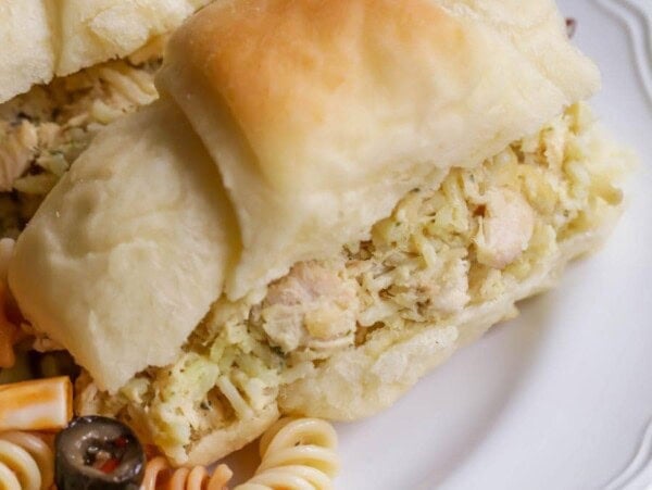 Her family calls them chicken pockets, but whatever you decide to call them, they’re going to blow your mind! You can imagine that crescent rolls stuffed with shredded chicken, cream cheese, cream of chicken, and Italian dressing mix would be pretty awesome – and they are!!