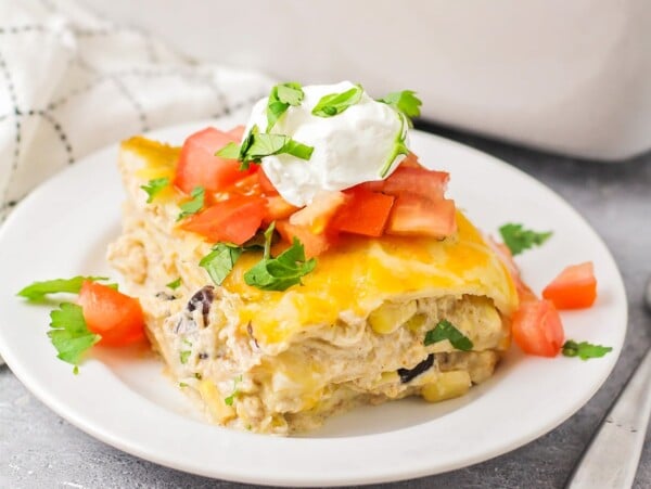 - Feeds the family. It has many cheesy layers, is great for dinner, and is a go-to recipe the whole family loves, just like our Lasagna Roll Ups, Slow Cooker Lasagna, and White Chicken Enchiladas.