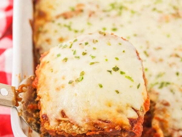 Like our Chicken Parmigiana, this chicken parmesan is a family-favorite Italian dish! We love to serve it up with a side salad and some Cheesy Garlic Bread.