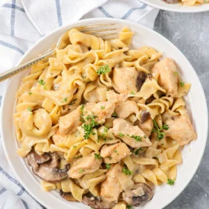 This chicken stroganoff is a creamy, comforting, and weeknight friendly meal! It’s the kind of cozy pasta dinner everyone asks for again. It comes together with simple pantry staples, so you can make it anytime without a special trip. Not to mention it’s ready in about 30 minutes, it is a reliable win for even the pickiest eaters.