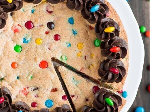 - DECORATE. Pipe dollops of chocolate frosting on the top of the cooled cookie cake using a large open star tip. Sprinkle with colorful sprinkles!