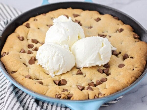- Use chocolate ganache, dust with powdered sugar, use Peanut Butter Frosting, Vanilla Buttercream Frosting, or top with a scoop of Vanilla Ice Cream – think Pizookie.