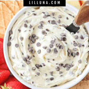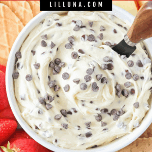 We love a tasty dip, especially a dessert version like this one! We often include one in our Charcuterie Board spread to add a little something sweet. This chocolate chip dip resembles our popular and equally delicious Chocolate Chip Cheese Ball. Eat it by the spoonful or pair it with something sweet or salty like graham crackers or pretzels.