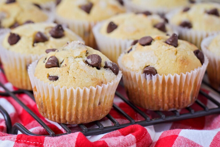 Soft and airy chocolate chip muffins are studded with milk chocolate chips for a great on-the-go breakfast, treat, or snack!