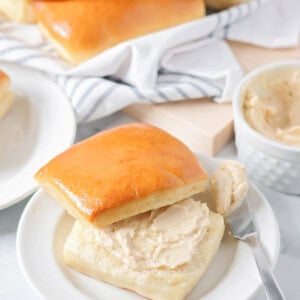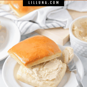 The obvious pairing for this butter is our Copycat Texas Roadhouse Rolls, but it’s perfect on any rolls, muffins or bread. Best part? It’s made in minutes!!