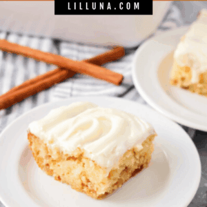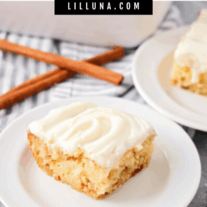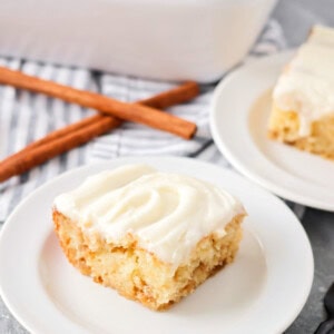 If you’ve never made poke cake before, it’s basically a cake that is poked with holes and filled with a topping that soaks into the cake. For this recipe, the holes allow the cream cheese icing to soak into all the nooks and crannies of this brown sugar and cinnamon cake, which makes it extra moist and extra yummy!