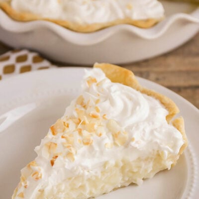 A classic pie recipe, filled with coconut pudding and topped with cool whip and toasted coconut shreds. This pie is perfectly sweet and creamy, it’s hard to resist!