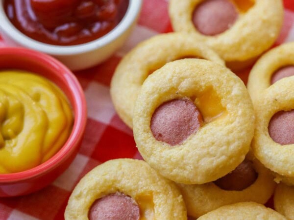 These hot dog bites are like mini Pigs in a Blanket (a twist on a regular hot dog or corn dog.) It’s SO easy that the kids whip them up at least a couple of times a month. There are only TWO ingredients (plus dipping sauce), and they’re on the table in UNDER 20 minutes!