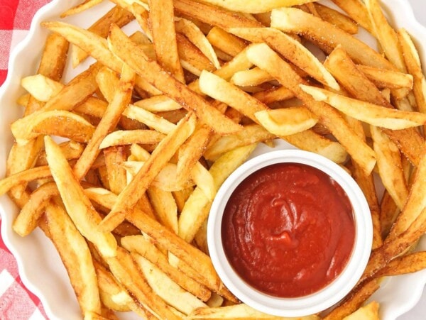 We frequently order sweet potato fries as a side dish whenever we go out to eat. They’re SO tasty, especially served on the side of a burger, bbq pork sandwich, or grilled chicken!