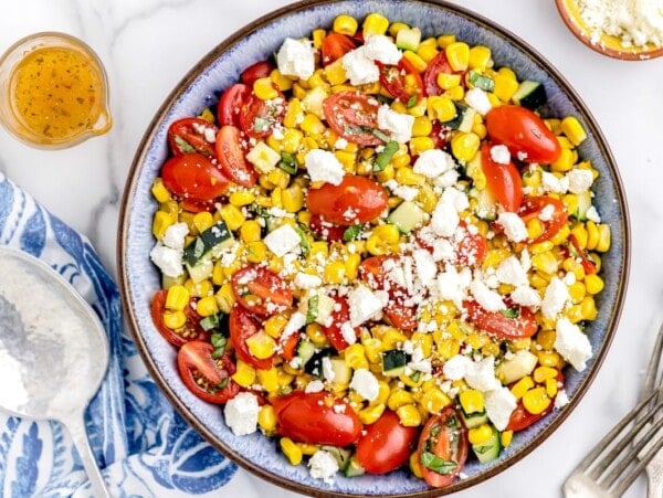 - Only 2 steps. The prep takes just a few minutes (packaged frozen corn for the win)!