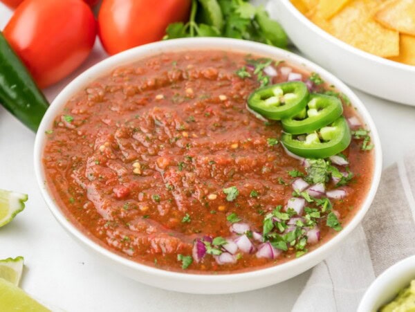 It still includes diced tomatoes, which keeps the flavors of an original salsa. The jalapeños give it a kick of heat, and the lime juice and cilantro enhance the flavor of all the other ingredients.