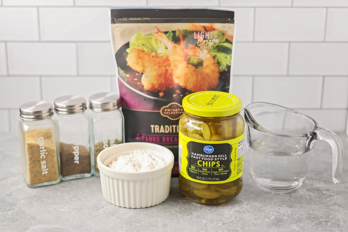 - Dill pickle slices (1, 16-ounce jar): Tangy, juicy centers that balance the crunchy coating. To slice whole pickles, we suggest cutting them just shy of a ยผ inch thick for the best pickle-to-batter ratio.