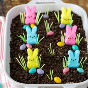 We love this holiday version of our dirt cake and make it EVERY year! For more Easter desserts, try Carrot Cake Cookies or Easter Basket Cookie Cups.