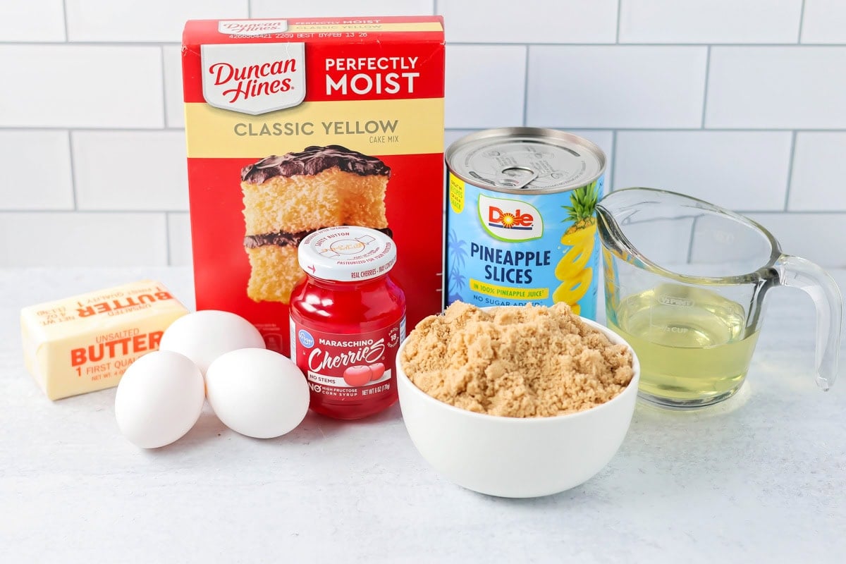 - Maraschino cherries (7): Adds sweetness and that classic pop of color. They make the top look festive once the cake is inverted.