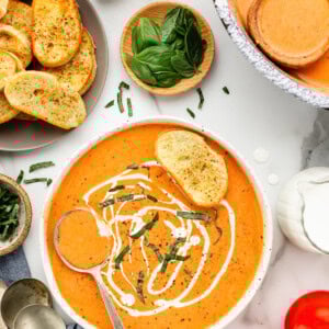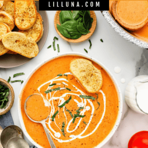 Tomato soup is always a go-to at home. For more soup recipes, check out Roasted Tomato Soup, Creamy Tomato Basil Soup, and Tomato Soup with Grilled Cheese.