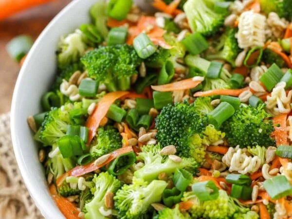 Fresh and vibrant salads are our FAVORITE! So, naturally, when we want something fresh and a bit of crunch, this broccoli salad recipe is our go-to (especially for potlucks, showers and parties)!