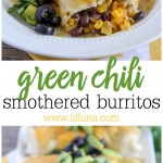 Pull together canned items in your pantry to make super easy green chili smothered burritos. This flavorful meal comes together in a pinch!