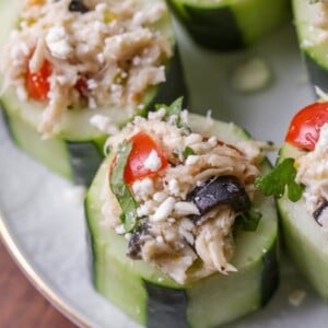 Scoop about 1 tablespoon of the chicken mixture into the cucumber cups. Garnish with additional cilantro and feta, if desired. ENJOY!