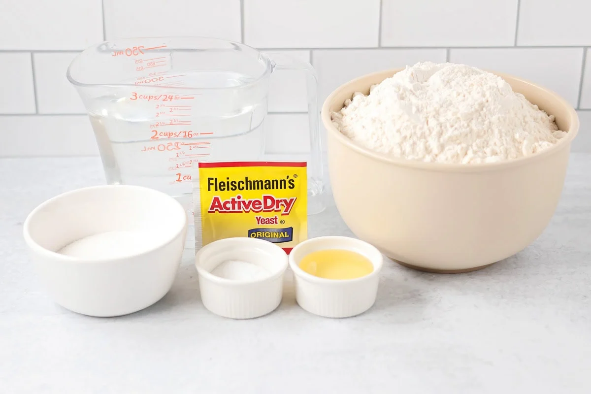 - Warm water (2ยผ cups): Hydrates the flour and activates the yeast for a steady, strong rise. Water temp matters, aim for warm to the touch, about 105 to 110ยฐF, to wake up the yeast without harming it.