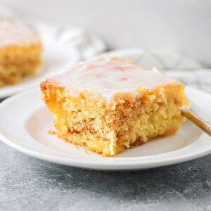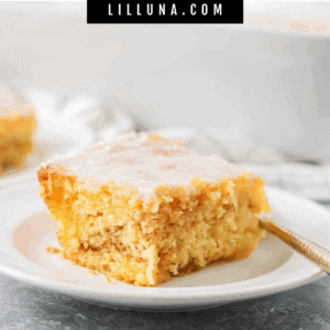 This easy cake recipe uses a simple cake mix to save you time without sacrificing flavor. With a few pantry ingredients, you’ll create a moist and fluffy cake with a gooey, cinnamon-brown sugar swirl that bakes right in. Then, give it the honey bun finish by drizzling a buttery glaze on top.
