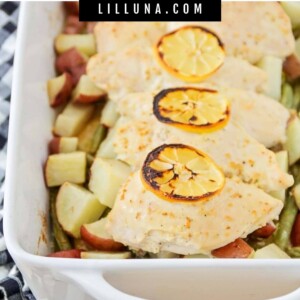 The chicken and potatoes were great! However, the lemon slices completely saturated the greenbeans. They became bitter and we couldn’t eat them. I would make again with a lot less lemon, maybe just add some juice to the oil mixture.