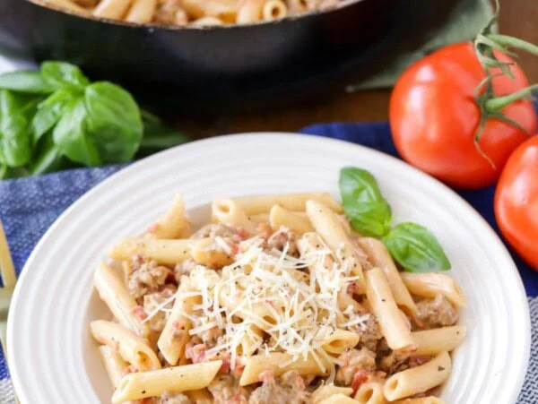 - Savory creamy sausage penne pasta is quick, easy, and on the table in no time! It’s cheesy and sure to be a family favorite!!