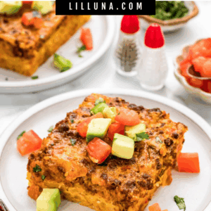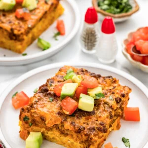 - Top each slice with diced avocado, tomatoes, or salsa, or spoon some of the casserole into a flour tortilla.