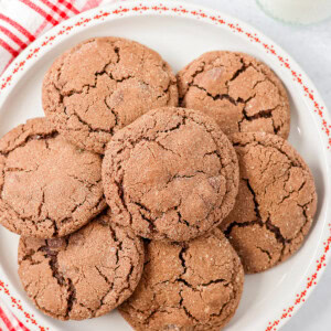 The dough mixes up fast, rolls in cinnamon sugar, and bakes into crackly topped cookies with melty chocolate chips. They taste like your favorite mug of cocoa in cookie form. Best of all, they are perfect for sharing.
