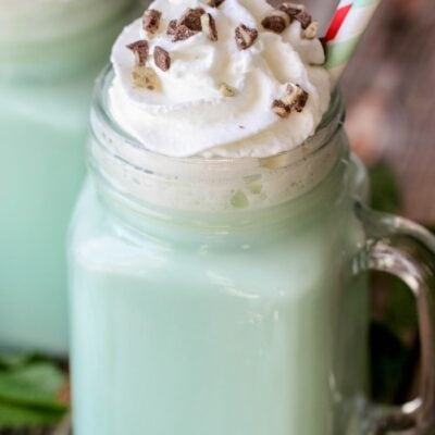 It’s super creamy and filled with melted white chocolate chips, with just a hint of mint extract. We added some green food coloring to make it look more festive, and topped it off with whipped cream and crushed andes mints! It was SO delicious!!