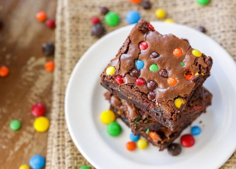 I love how colorful m&m’s make brownies! We love doing this with the seasonal ones too!