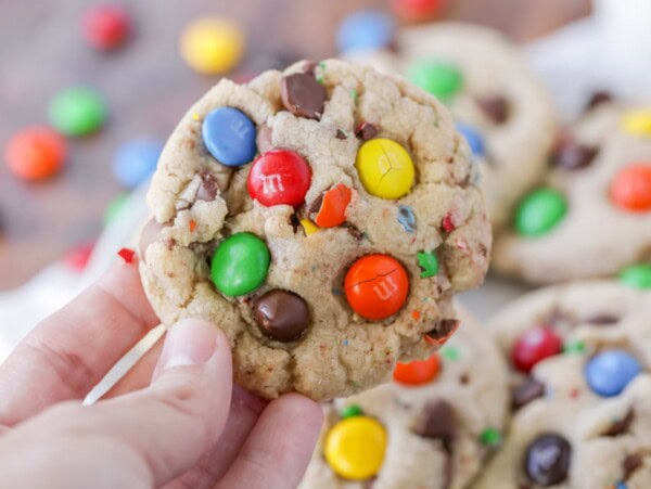 And who doesn’t love M&Ms? You could even change it up and use your favorite flavor. We LOVE Baking with M&Ms – from M&M cookies to M&M cookie cake – they’re a delicious addition to so many desserts and the perfect addition to the chewy oats in this one.