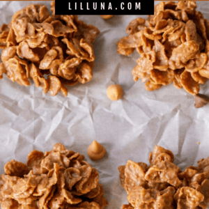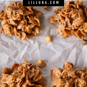 They have the yummy flavors of peanut butter, chocolate chips, and butterscotch chips all combined and mixed with crunchy cornflakes – that’s right! Just 4 ingredients!