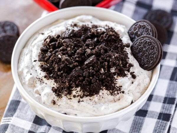 - optional topping(s) – Instead of sprinkling the top with remaining cookie crumbs, sprinkle on Mini Oreo Cookies or drizzle with Chocolate Syrup.