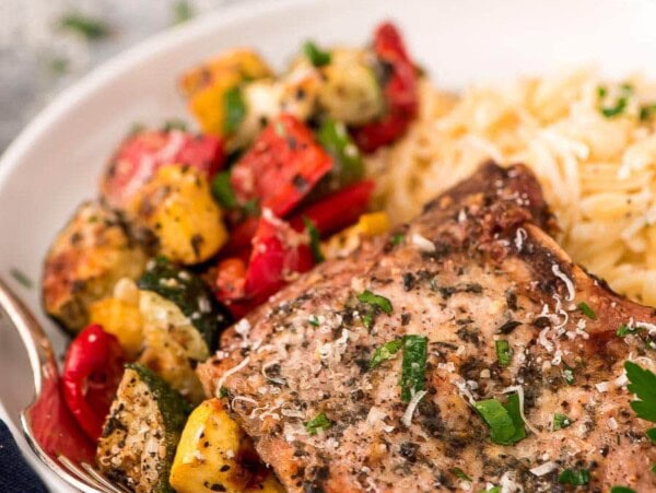 Pork chops have become a dinner time staple over the years. Both of our parents have made them for as long as we can remember, and now we can’t get enough of them!