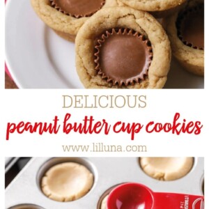 We love these peanut butter cup cookies and think you will too – they’re perfect for the chocolate + peanut butter lover in your family! Let us know if you give them a try. 🙂