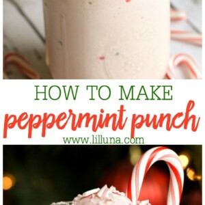 Peppermint punch is perfect for holiday gatherings. If you need more ways to use up all of those cute candy canes try crunching them up in Peppermint Ice Cream or Brownies with a side of Peppermint Fluff!