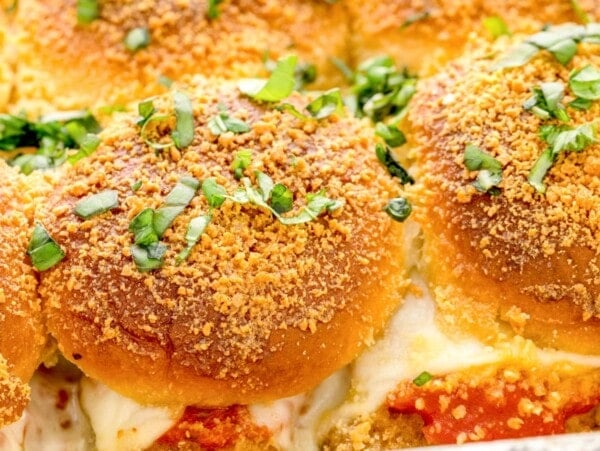 They can be frozen for up to 2 to 3 months. Assemble the sliders but don’t bake them, then cover tightly and freeze. When ready to use, thaw overnight in the fridge and bake as directed. You may need to add a few extra minutes if they’re still a little cold in the center.