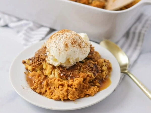 Store any leftover pumpkin crunch dump cake in an airtight container in the fridge for 2-3 days.