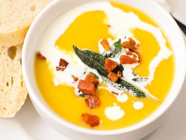 This velvety smooth pumpkin soup is easy to make and just 10 minutes of prep – it’s a fall favorite!