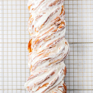 The dough mixes up soft and smooth, twists beautifully, and bakes into golden spirals with just the right cinnamon sugar swirl. Frost while warm for that bakery-style finish, then add a second swipe once cooled if you like extra icing.