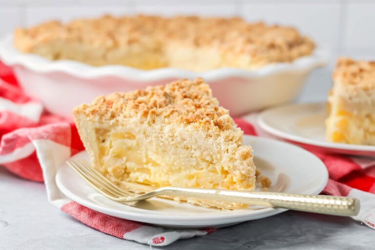 Imagine a classic apple pie, but with an extra layer of magic. This pie features tender, spiced apple slices in a rich, creamy, and subtly tangy sour cream custard. We topped ours with a buttery crumb topping for the ultimate perfection!